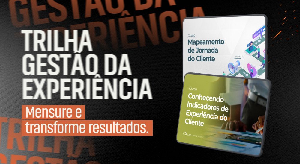 Este curso faz parte da Trilha Gestão da Experiência que foi criada para profissionais que desejam dominar as ferramentas de diagnóstico, mensuração, design da experiência e melhoria contínua em CX. Nesta trilha você irá aprender com os cursos de Mapeamento de jornada do cliente e o Curso Conhecendo indicadores de experiência do cliente, a enxergar o negócio pela perspectiva do cliente e a traduzir insights em ações de alto impacto. Com este conhecimento você poderá transformar dados e jornadas em experiências que irão encantar os clientes.